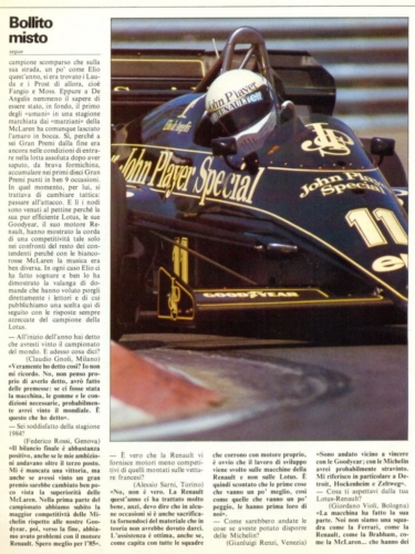 In 1984 Elio finished 3rd in the World Drivers Championship, behind the unstoppable Michelin-shod McLaren duo of Niki Lauda and Alain Prost. Despite having Ayrton Senna as his Lotus Team-mate, he led the 1985 Championship until mid-season.